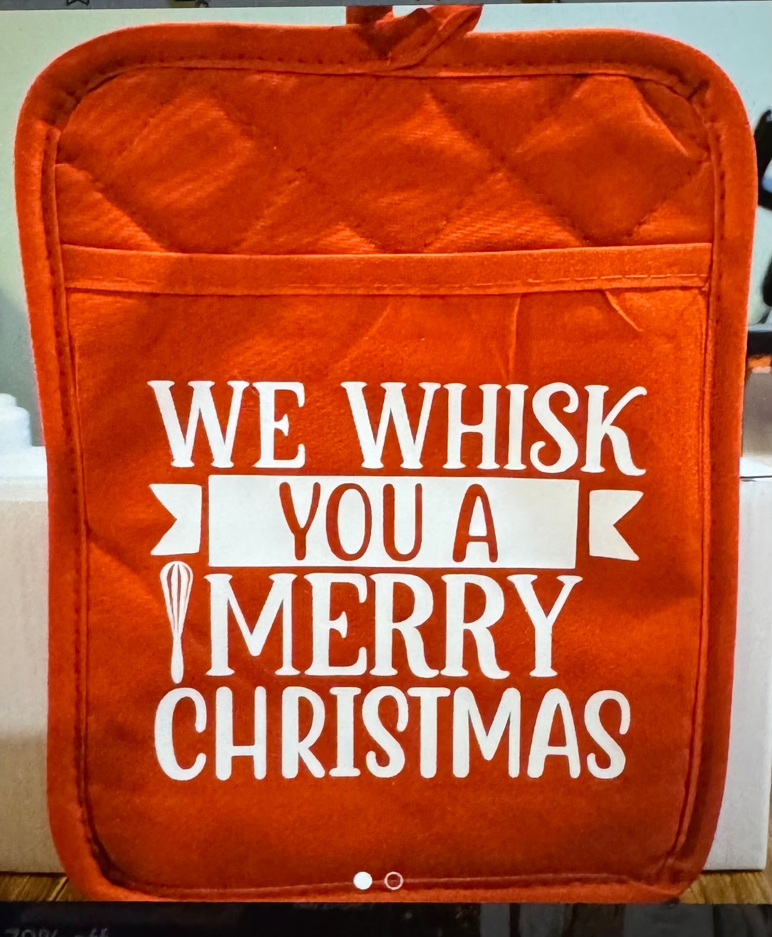Stay merry and bright in the kitchen with our beautifully designed 7 x 9 inch potholder, expertly engraved in vinyl with festive Christmas sayings.